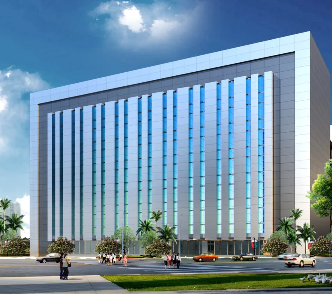 A contemporary gateway building designed to create a strong first impression for a modern industrial and business campus.